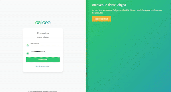 Interface simplifiée avec menu latéral persistant. Regroupement thématique métier, navigation plus rapide par clics directs ou sous-menus. Affichage personnalisé selon les permissions utilisateur et unification complète des modules Galigeo.